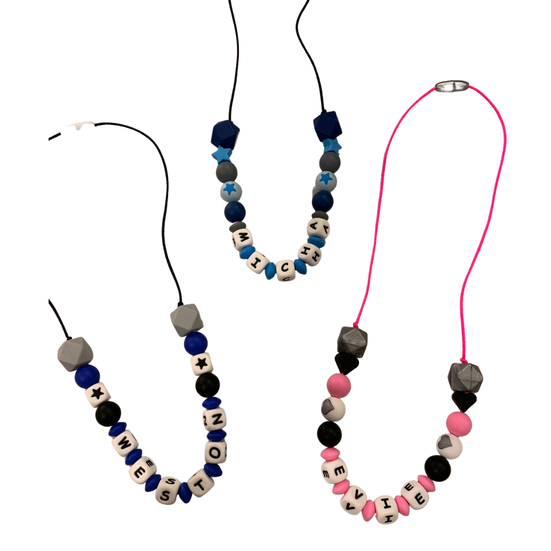 These silicone necklaces are a great accessory tool for kids who love to chew.