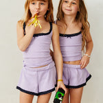 Lizzie Lavender Heart Pointelle Tank with Navy Lace | THEME NYC