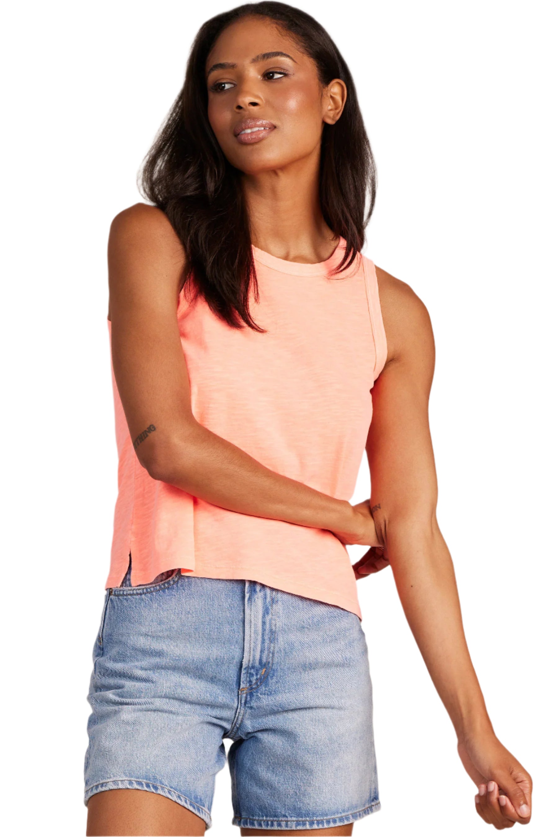 Cropped, loose fit, with an easy crew neckline and tank strapping. A tank we believe in for both style and comfort.